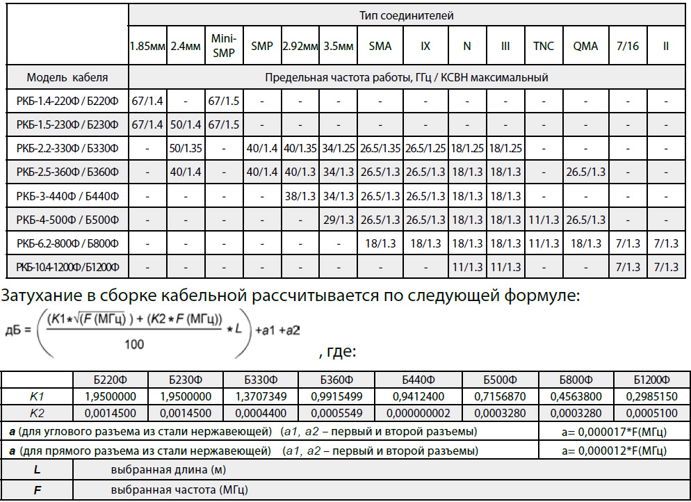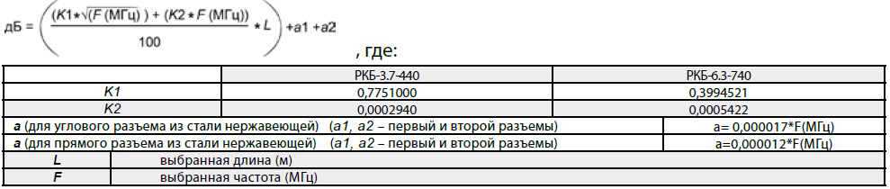 Затухание в сборке кабельной рассчитывается по следующей формуле:
