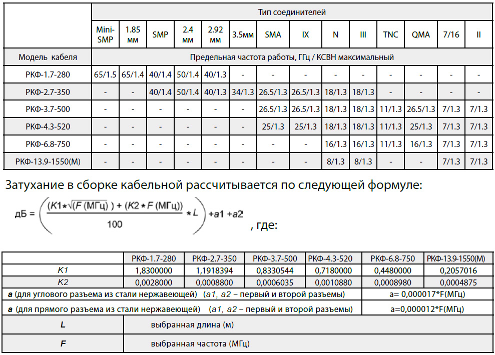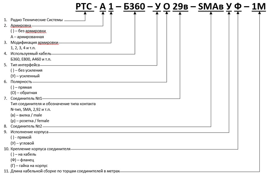 РАСШИФРОВКА ОБОЗНАЧЕНИЯ СБОРКИ КАБЕЛЬНОЙ РАДИОЧАСТОТНОЙ